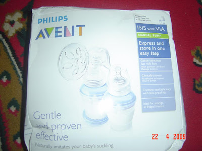 My Ariff is 13 days today...I'm a lil bit upset with myself as I have not succeeded in breastfeeding him naturally..but I have been trying hard since day 1..the best that I can do for my beloved baby is to express my milk few times a day for my lil baby - manually and using AVENT breast pump (bought urgently last week with the help of my bro-in-law who is working in Metrojaya)...