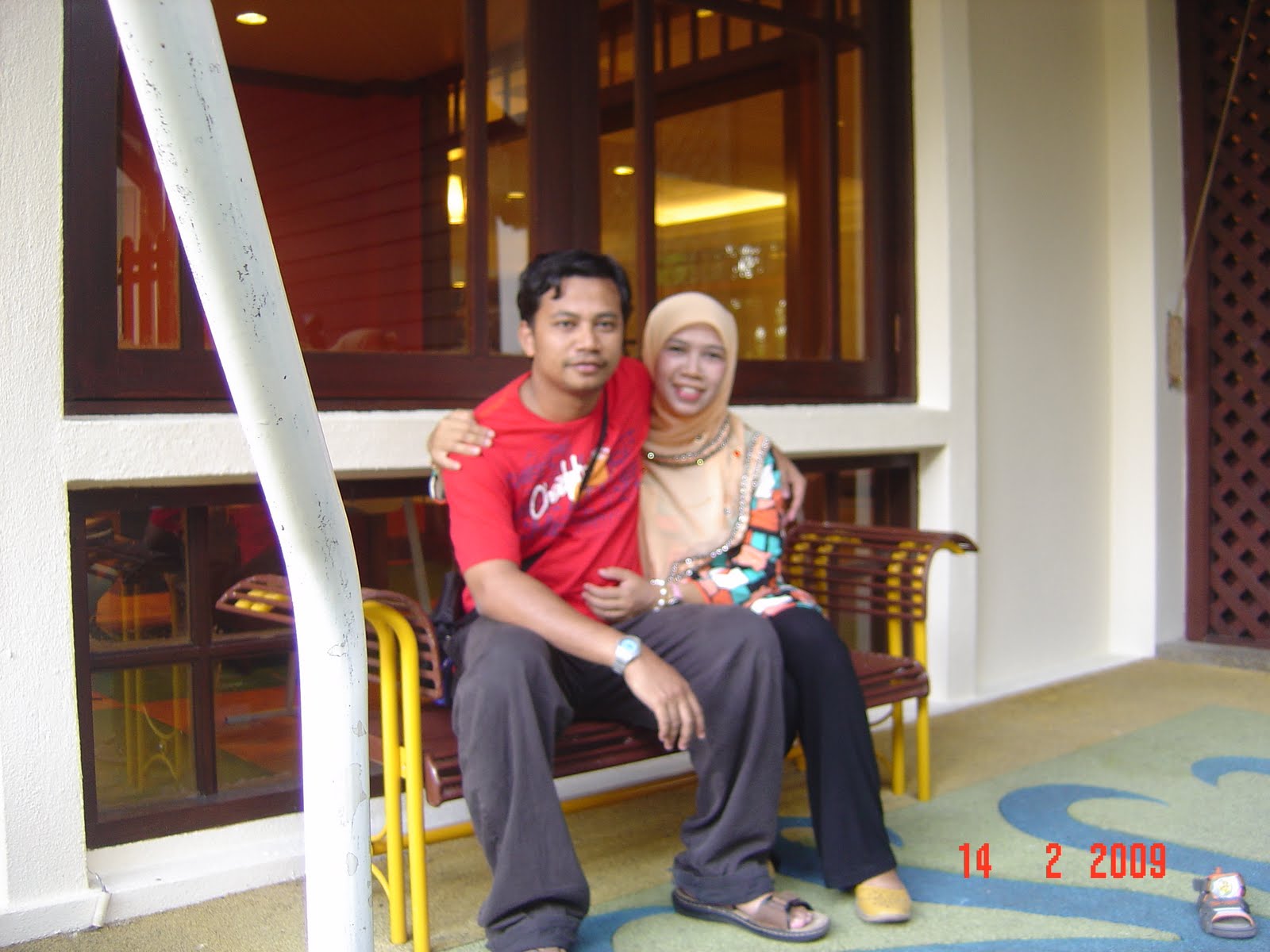 --> for me this is one of my fav romantic pic me+hubby...coz the pic was taken by En.Timer while we were having vacation @ Avillion PD, I was 7 month preggy(dah boyot my tummy masa tu..)...and this is the only pic where we pose berdua kat Avllion tu..anyway, my hubby plak jenis yg bukan PDA (Public Display Affection)...so memang tak byk pic romantic pose berdua...plus, my boy Zharfan 'marah'-->jeles if I pose romantik berdua with hubyy...what to do..huhuhub) pic di hari p'kahwinan anda(pic y unik/sempoi/up 2 u)- tak de pic yg sesuai to be uploaded here..
