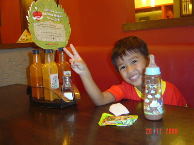 After the show was over, we had our meal at Nandos (our fav!)..now eating out is convenient for us coz Ariff dah pandai duduk dlm baby chair...so tak kacau Mama makan hehehe