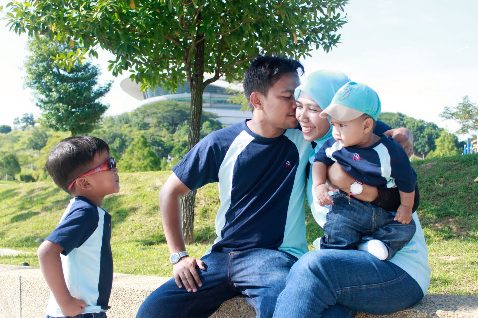 ni our family sweet moment masa outdoor photoshoot with deep blue lense, kat tmn putrajaya. we really enjoyed ourselves, gelak2 sambil buat mcm2 pose :p and me suka sgt pic ni sbb ada aksi mcm dlm pic ni..bukan senang papa nak kiss pipi mama in public and zharfan siap cekak pinggang pulak buat2 marah :p