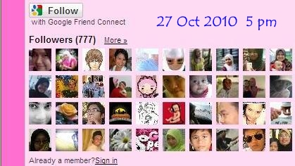 wah cpt dh 777 follwer...mmg cun number tu...lg skit dh nk sama byk follower kita...kita rs follower suzie leh cecah 1k++ nanti