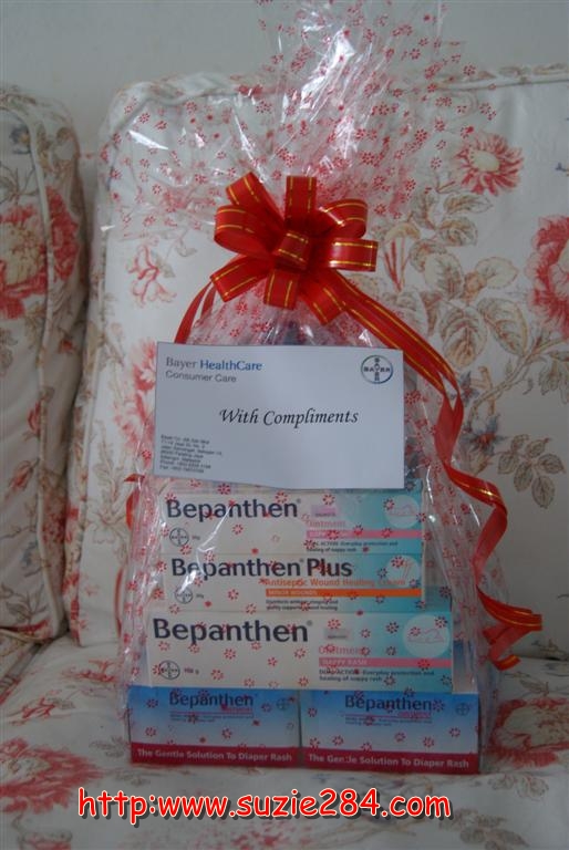 nilah hadiahnya...Bepannthen hamper worth RM150--ada cotton bud, 1st aid kit mini, nappy rash cream, ointment cream :)