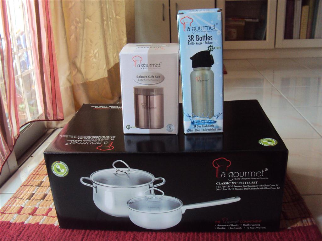 me dh pegi amik pun set periuk tu :) total value RM500...berbaloi2 sbb biskut RM13 ajer setin (POP)
