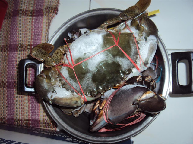 ni ketam2 yg my adik ipar bawak balik dari Sabah..dia ngajar kat Sabah, so time cuti sek dia balik kelate, singgah kat KL dulu sgn sekotak seafood termasuk ketam, sotong, ikan tuna, daging rusa :)