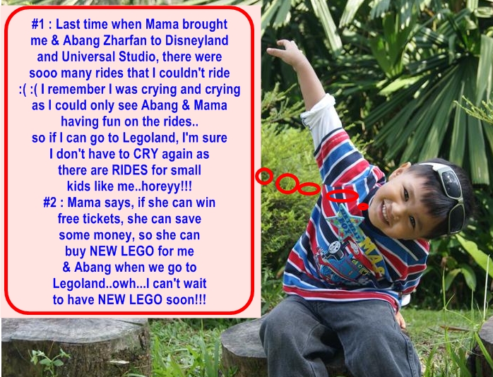 ..Legoland is the latest 'hottest' spot for fun family holiday in Malaysia..definitely everyone wants to be there--what more if it is FOC a.k.a FREE!!!