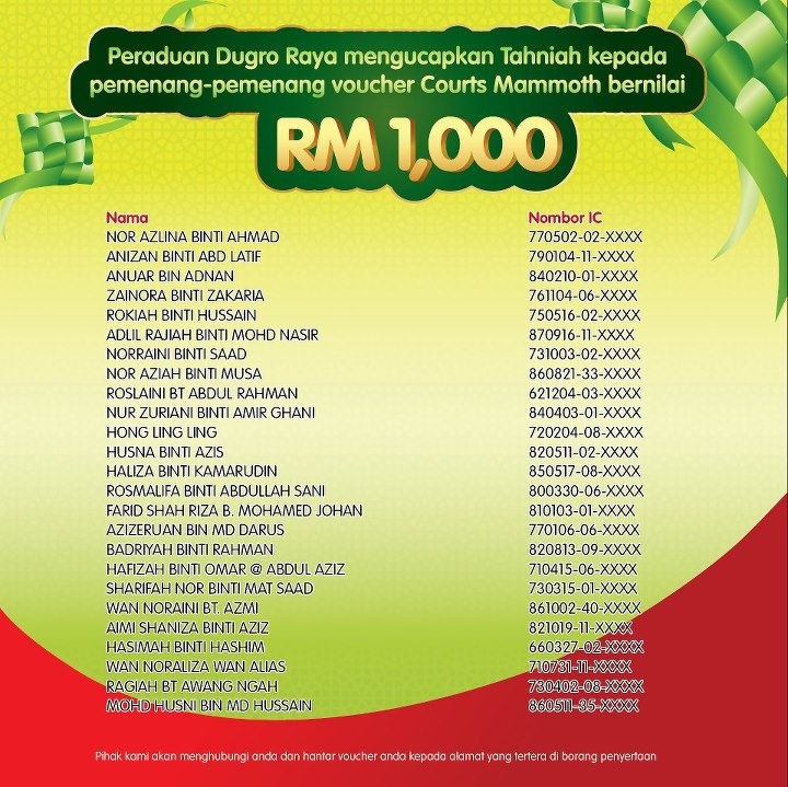 nama my SIL (aimi) sangkut as one of winners....syukur alhamdulillah...---me dh plan dh ni---rasanya nak guna voucher ni nak beli tv lcd nak letak dlm bilik tido :)