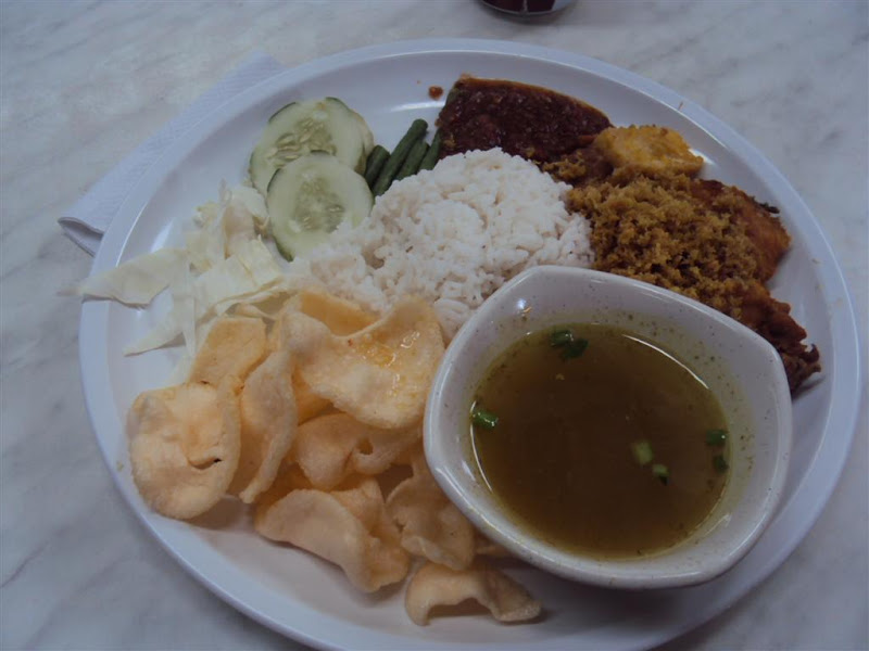 me suka mkn nasi ayam penyet, tapi tak leh mkn kerap sbb tingi kalori & kolestrol--kalau mkn kat mana2 restoran, avergae harga dlm RM10 gitu (per set biasanay), tapi kalau mkn kat food court giant bt caves, me sukaaa sbb murah ie satu set mcm dlm pic ni, harga Rm5--siyes sgt byk nasi +ayam pun besar gak sizenya--and sambalnya sedap!!
