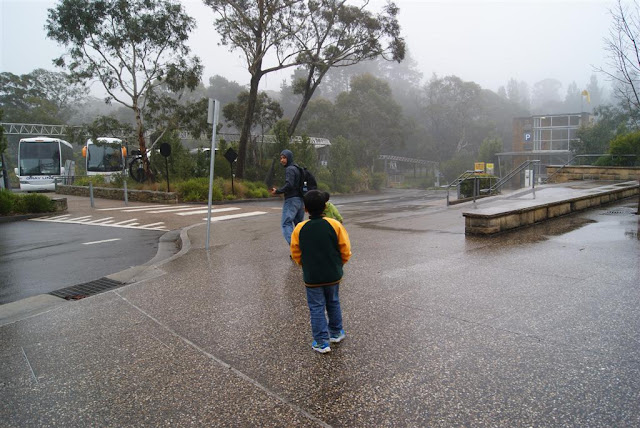 then naik bas...perjalanan ke blue mountain dlm 2 jam jugak...satu lg cabaran ialah...hujan lebat time ni...so memang dh dijangka tak dpt nak tgk blue mountain sbb kabus sgt tebal and cuaca super sejuk esp lat area blue mountain..atas bukit kan..