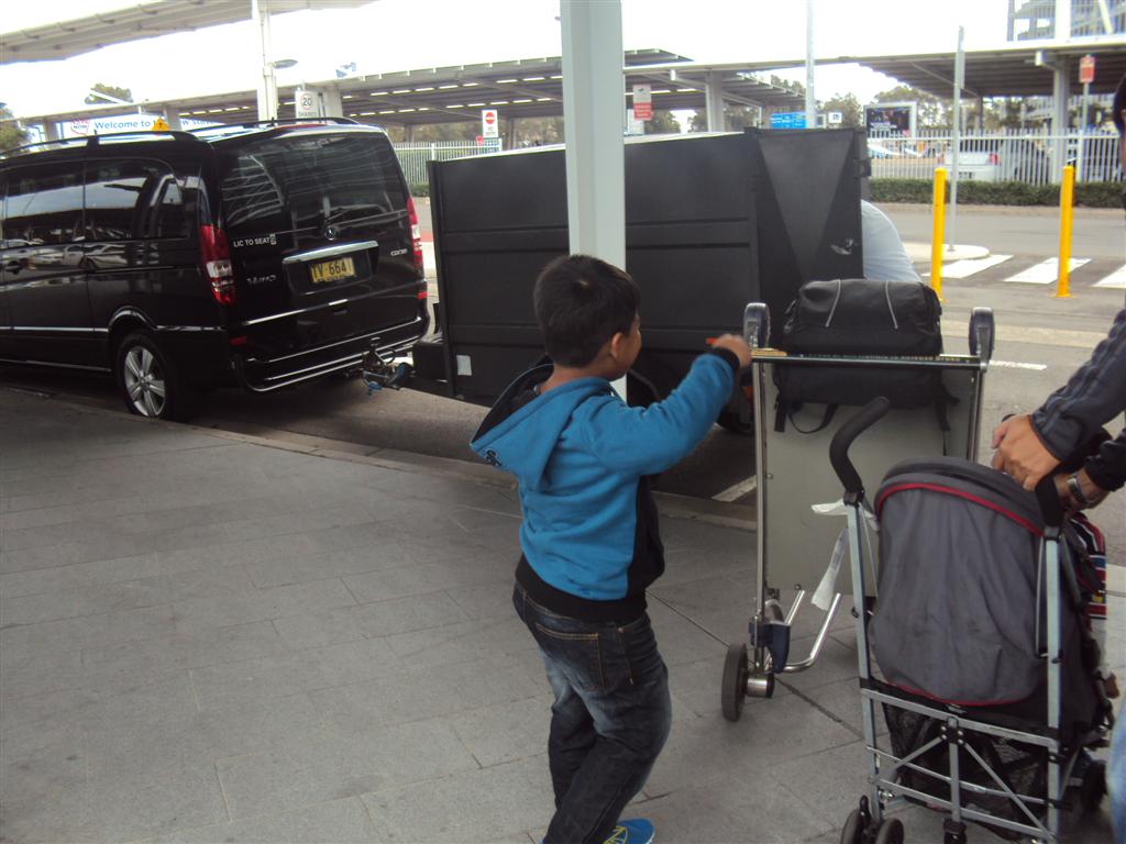 tu nampak tu drebar airport coach tgh sibuk angkat brg...me suruh zharfan posing...kami semua memang excited lah sbb 1st time jejak bumi aussie/OZ ni...and sbb cuaca besh--ie reminding us of cuaca kat Notts...