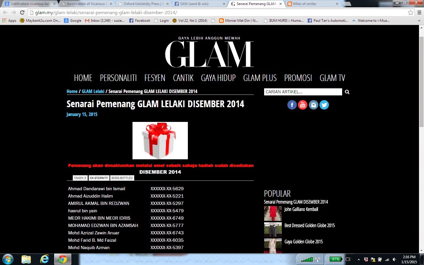 (6) won something meaningful for my mom..alhamdulillah..nama sil sangkut contest persil..dpt washing machine brand electrolux (notification of winning dpt via sms on 28/1/14) katanya wm ni akan dihantar in 2-3 weeks time.. syukur sgt2 :), masa yg tepat sbb wm kat umah my mom dh sgt2 uzur.. ramai my comper frens menang contest ni..kiranya weolls menang secara berjamaah gitu ;)