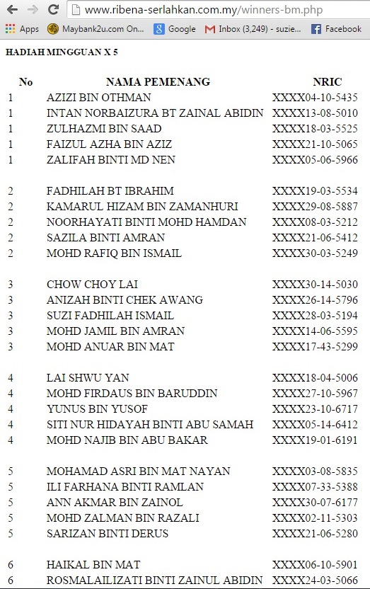 (5) my name sangkut utk weekly prize contest ribena (sangkut week 3)..dpt vou mydin RM500..syukur alhamdulillah