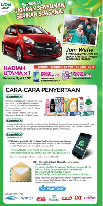 (1) dpt call masa 1st sept..sangkut conso utk contest wefie southern lion..syukur sgt2 sangkut gak conso (cash prize ;) )sbb bersaing hebat dgn otai2 pic..otai2 sapu hadiah HP samsung A7 tu..and one of fb compers menang myvi SE ie the GP..memang hebat lah!