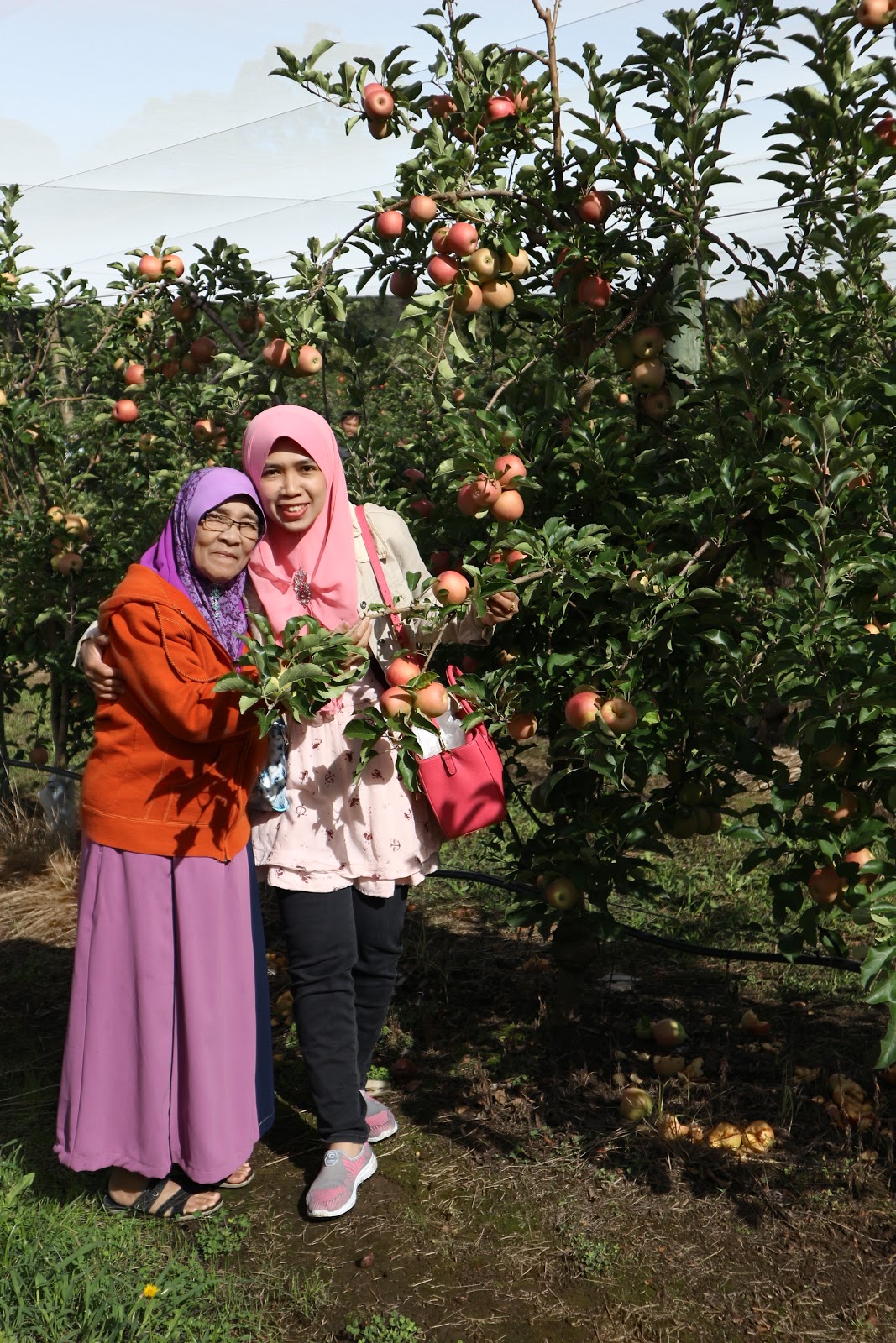 my mom posing solo...see dlm plastik tu..apples yg my mom petik dan berjaya bwk balik msia tu...siap bagi kat my adik2 lelaki..puas ati gitu!